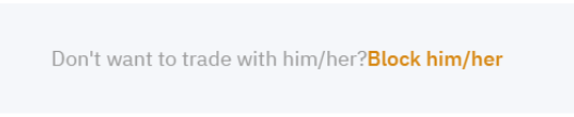 In situations where the particular counterparty is uncooperative, it is advisable to take precautionary measures to prevent encountering the same counterparty again. You can do this by clicking on Block him/her at the bottom of their profile page.