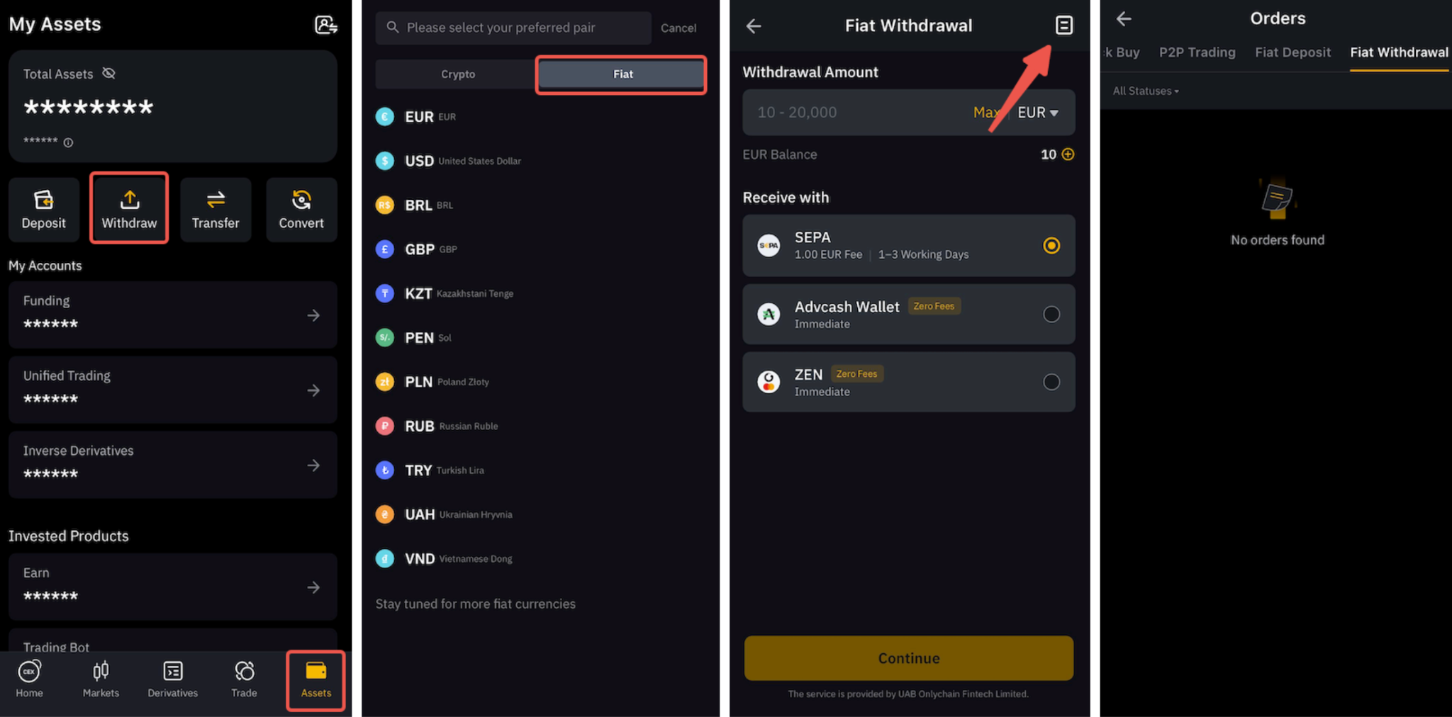 On the App, please go to the Assets tab and tap on Withdraw, then switch to Fiat → select any of the fiat → tap on the page icon.