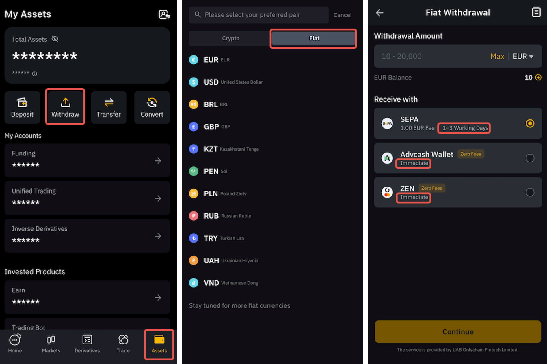 To learn more about how to withdraw fiat currency, please refer to the available articles for each currency here.