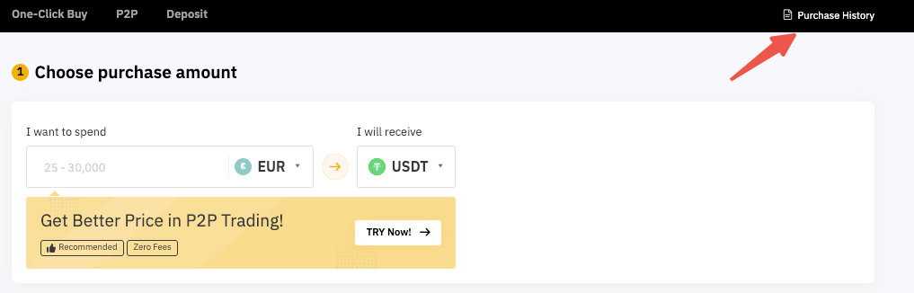 Step 7: After successfully purchasing crypto in your Bybit account, you can click on Purchase History to view historical transaction records.
