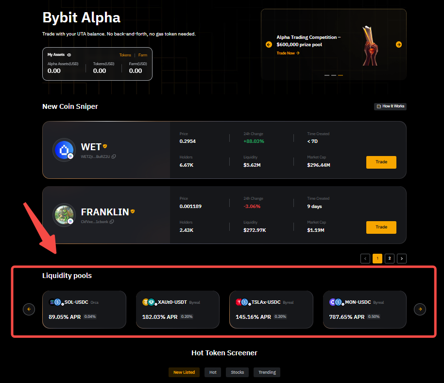 2. Supported currencies: Bybit Alpha supports a wide range of popular cryptocurrencies, such as SOL, bbSOL, USDT and USDC, ensuring flexibility and accessibility for all users.