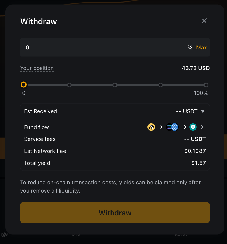 — To help reduce on-chain transaction costs, yields can only be claimed after all liquidity has been removed.