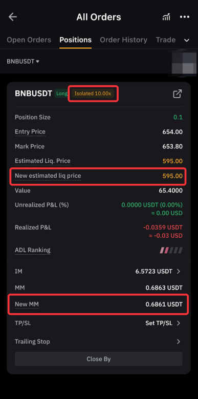 Isolated Margin: MM will be calculated using the Mark Price, while IM will continue to be based on the Entry Price. The liquidation price formula will be updated, but the value will remain fixed, consistent with the current experience.