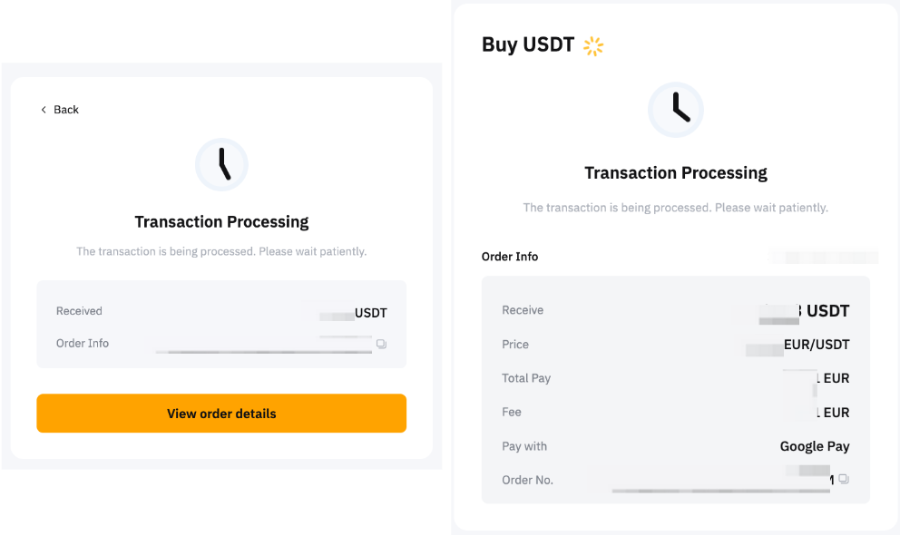 • Если платеж завершен, но ордер отменен из-за истечения времени ожидания, система обработает платеж и зачислит криптовалюты на ваш аккаунт.