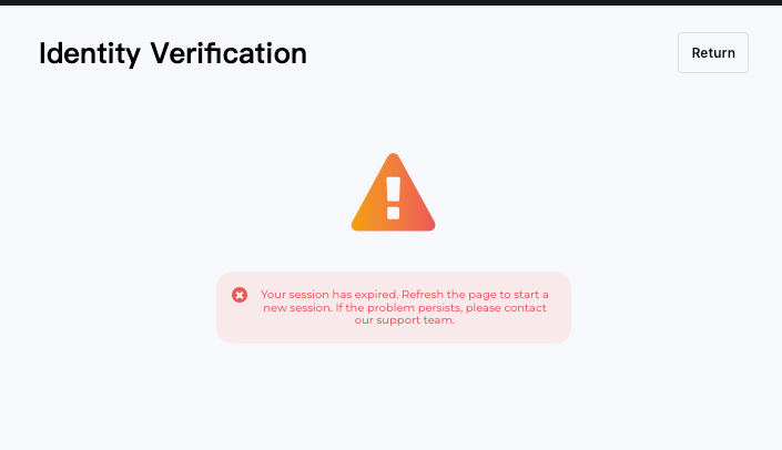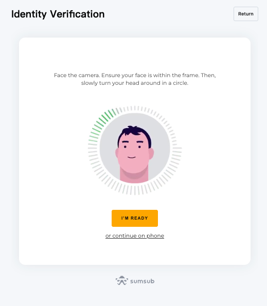 Примечание: Если после нескольких попыток вы не можете перейти на страницу распознавания лица, возможно, отправленный документ не соответствует требованиям или слишком много материалов поступило в течение короткого периода времени. В этом случае повторите попытку через 30 минут. Если проблема по-прежнему не решена, свяжитесь с нашей Службой поддержки, отправив заявку по ссылке.