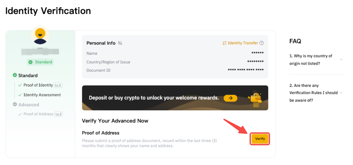 Шаг 1. Нажмите Пройти верификацию в разделе Подтверждение личности.