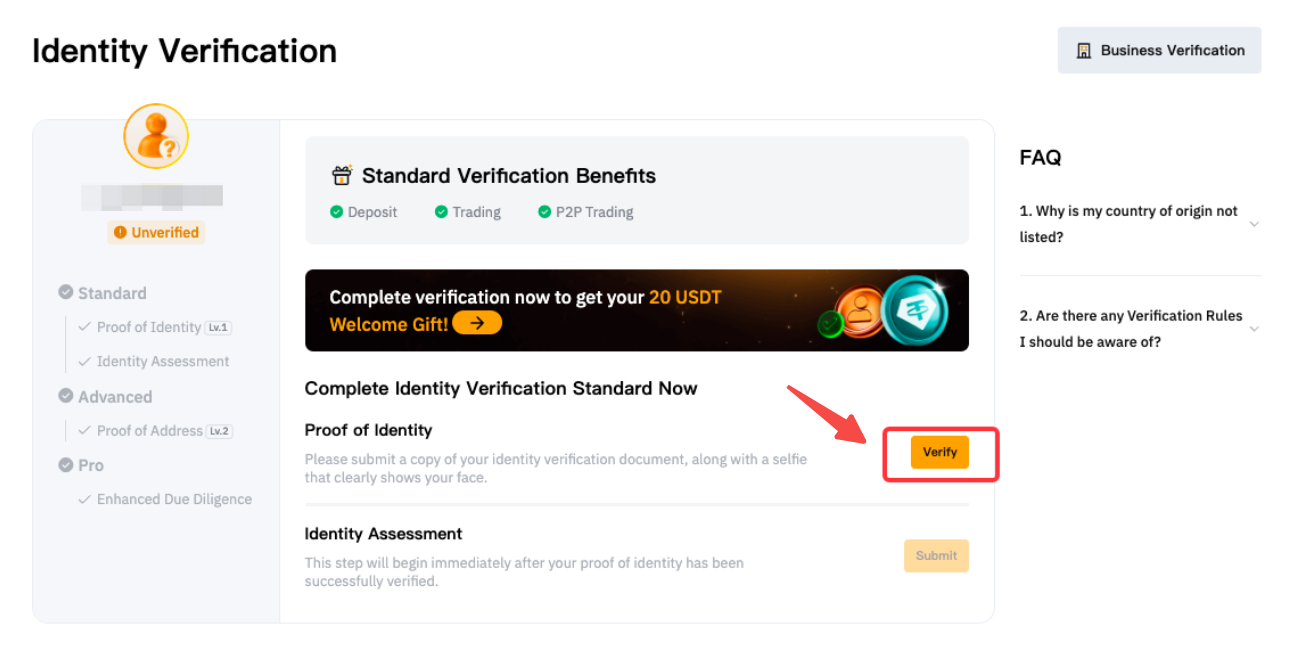 В некоторых регионах может потребоваться дополнительная верификация, как указано в Специальных требованиях к верификации. Для получения дополнительной информации о верификации бизнеса ознакомьтесь с разделом FAQ — KYC для корпоративных клиентов.
