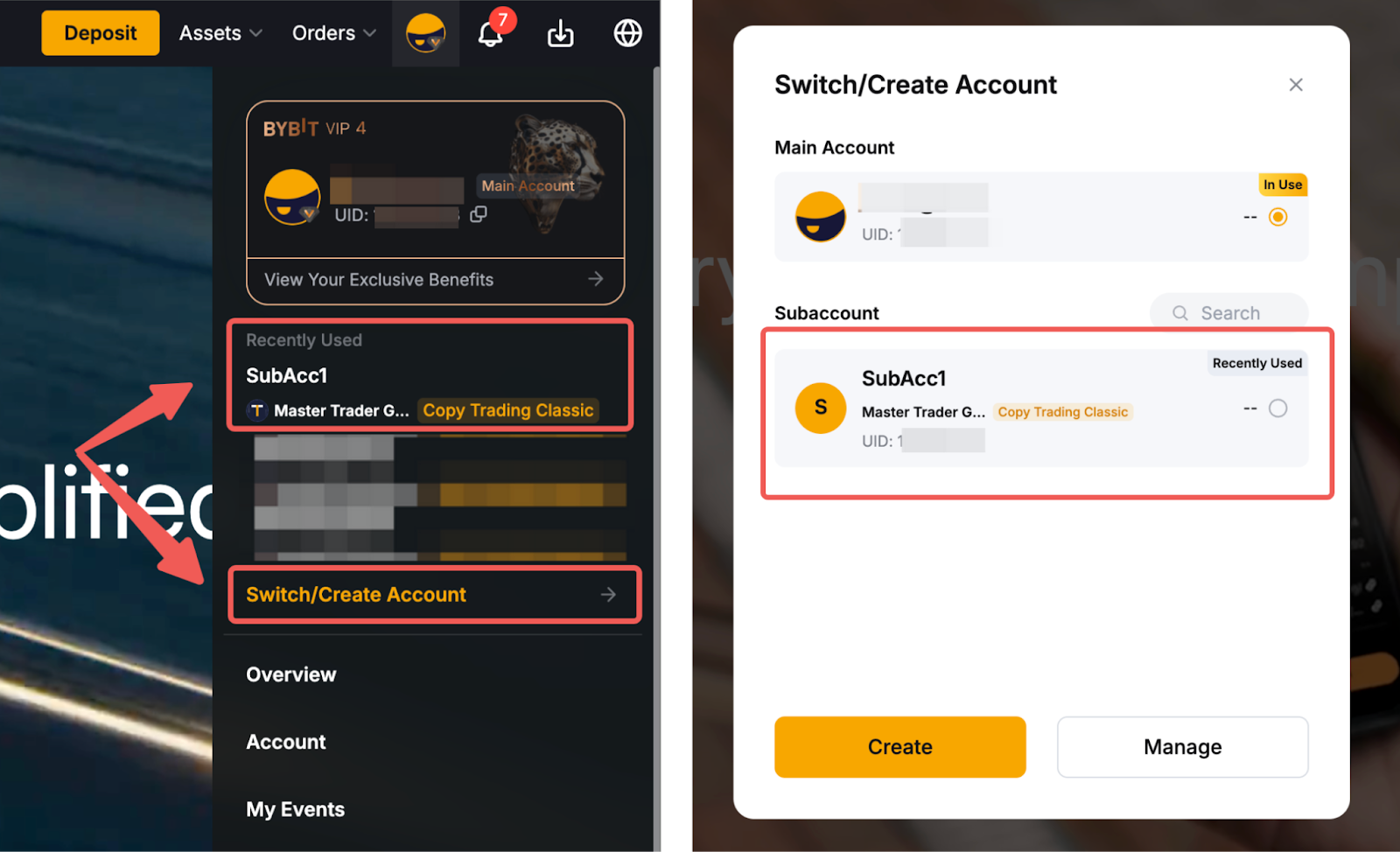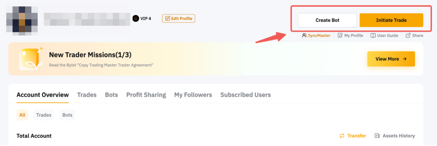 На главной странице Bybit наведите курсор на свой профиль и нажмите кнопку Перейти/Создать аккаунт. Затем нажмите на субаккаунт Мастера трейдинга из списка, чтобы перейти на страницу Трейдинг Мастера в Копитрейдинг.