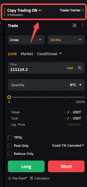 Все функции размещения ордеров и инструменты торговли, доступные для бессрочной торговли USDT, поддерживаются для Мастера трейдинга. Вы можете увидеть количество Подписчиков, копирующих сделки для соответствующей торговой пары над вашей зоной ордера. Чтобы просмотреть поддерживаемые торговые пары в разделе Копитрейдинг, перейдите сюда.