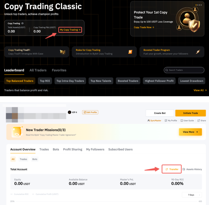 Шаг 2. Если вы впервые заходите на страницу Копитрейдинга, чтобы начать сделку, нажмите Мой Копитрейдинг (Мастер трейдинга) Перевод, чтобы внести депозит.