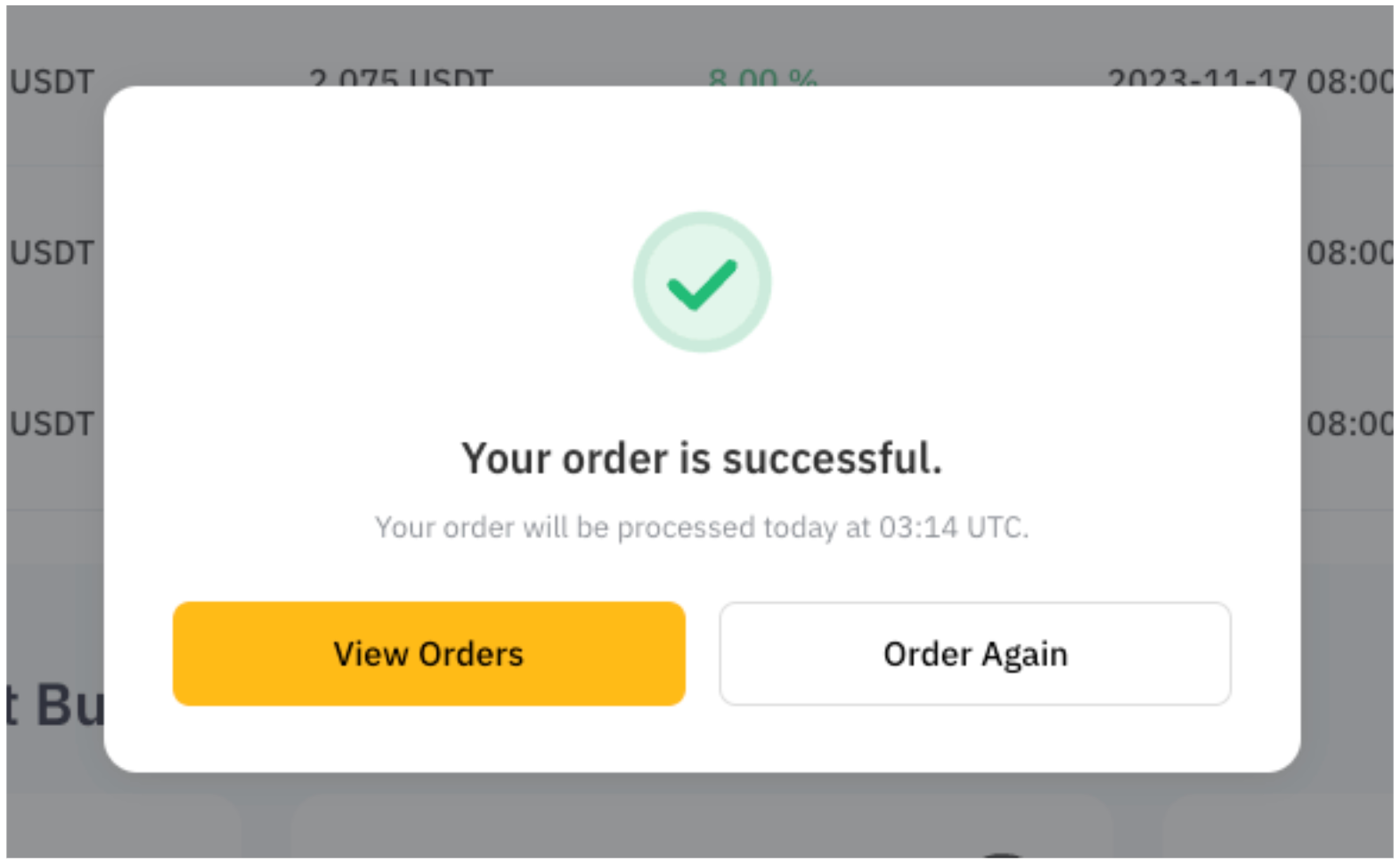 Чтобы посмотреть историю ордеров Покупки с дисконтом, нажмите во всплывающем окне на «Просмотр ордера».