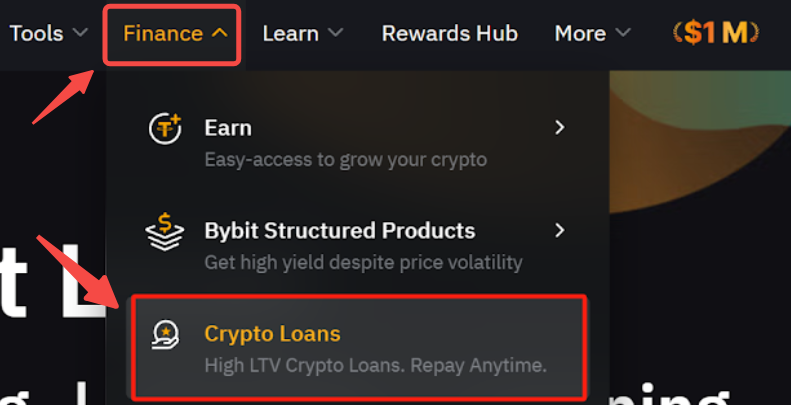 Шаг 1. Откройте сайт Bybit и нажмите Банкинг → Криптозаймы на панели навигации.