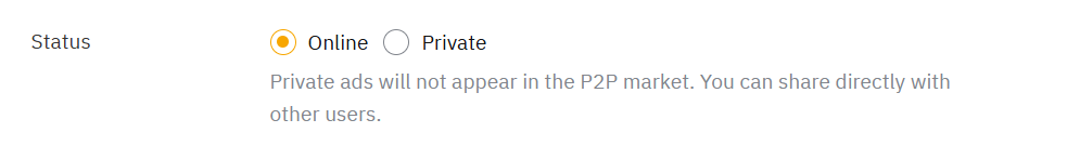 2. Непубличная: Объявления не будут отображаться на странице P2P-объявлений и доступны только трейдерам с QR-кодом или URL-ссылкой.