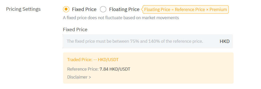 - Примечание: Фиксированная цена не будет колебаться в зависимости от движений рынка, тогда как плавающая цена рассчитывается путем умножения премиума на справочную цену.