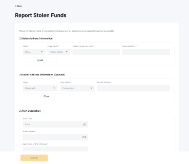 Шаг 3: предоставьте полную информацию о скомпрометированных активах, включая данные об украденных активах (тип и сумма), адрес хакера (если доступен), подробное описание того, как произошла кража, и ваши актуальные контактные данные.