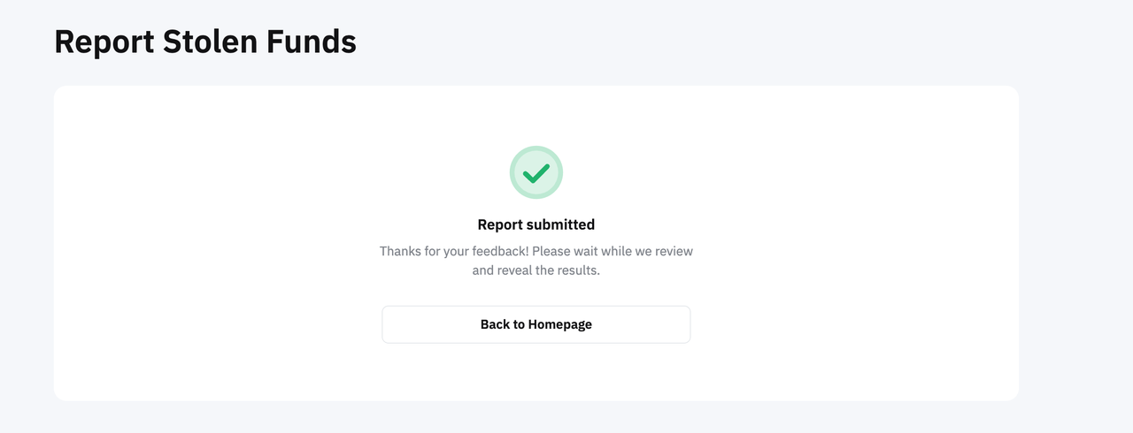 Шаг 2. Подтвердите данные на странице сообщения об украденных средствах.