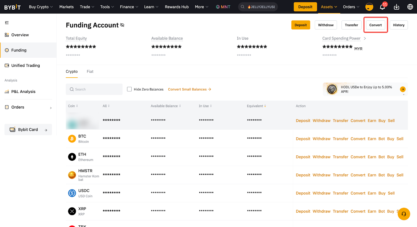 Кроме того, вы можете получить доступ к Конвертации непосредственно со страницы Аккаунт финансирования или Единый торговый аккаунт.