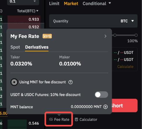 Предположим, вы являетесь пользователем VIP 4 со ставкой комиссии тейкера 0,0600%. Покупка 10 BTC на споте с помощью рыночного ордера обычно обойдется в 0,006 BTC в виде комиссии. При оплате в MNT комиссия снижается на 25% и составляет 0,0045 BTC в MNT. Подробная информация доступна в разделе FAQ — Оплата торговых комиссий в MNT.