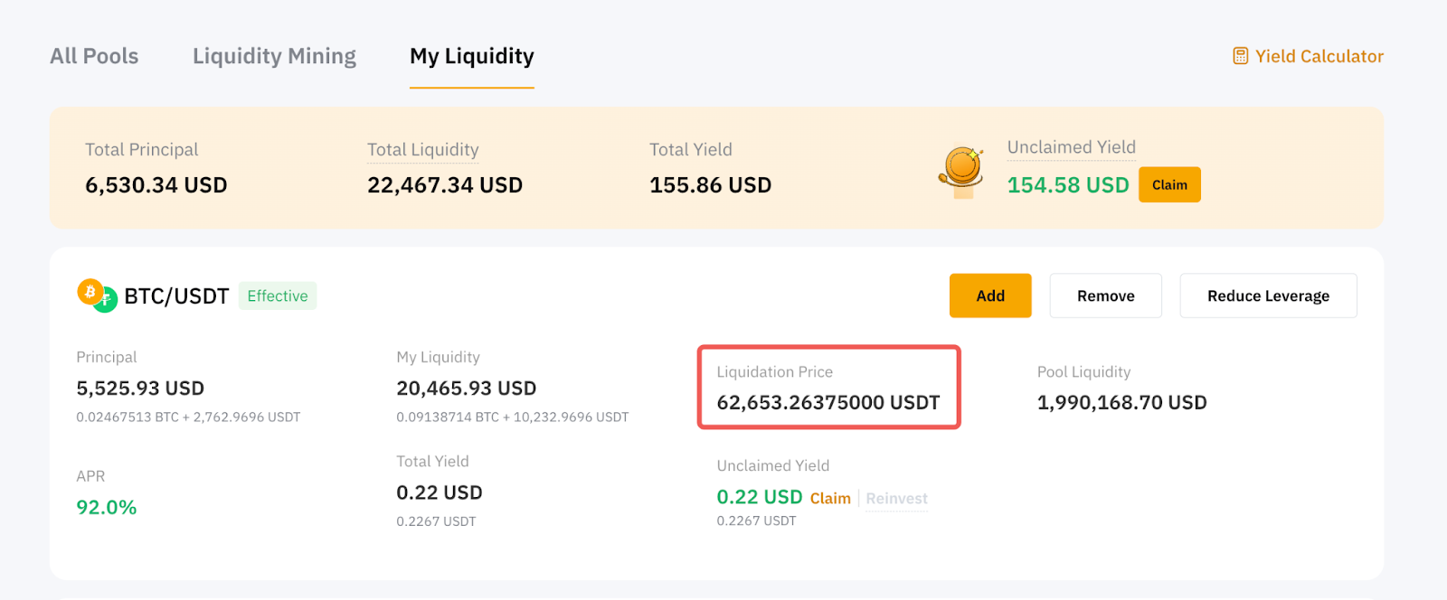 — Система постоянно отслеживает индексную цену и рыночную цену контракта. Если какая-либо цена опускается ниже цены ликвидации, ваша позиция по майнингу ликвидности будет ликвидирована. Ликвидация может происходить как во время удержания позиции, так и во время процесса погашения. Вы освобождаетесь от риска ликвидации только после того, как позиция будет полностью погашена.