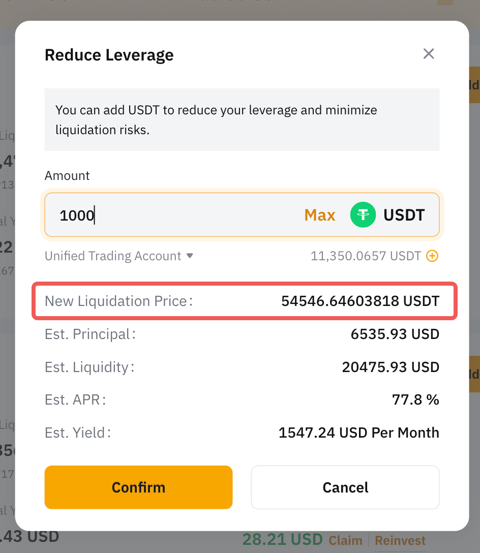 Шаг 3. Пожалуйста, проверьте новую цену ликвидации, а затем нажмите Подтвердить.