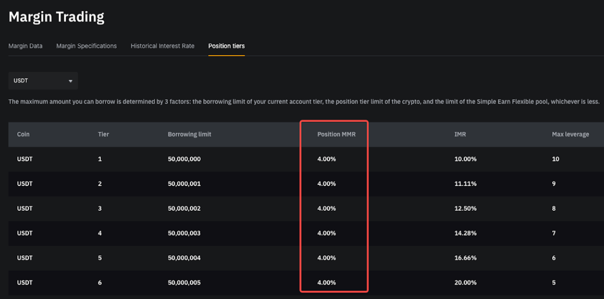 Уровень поддерживающей маржи (MMR) | Фиксировано на уровне 4% | Многоуровневый MMR на основе монеты и суммы заимствования.
