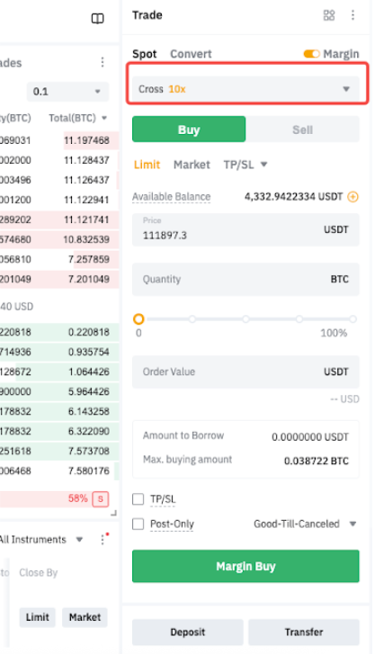 Настройка кредитного плеча для спотовой маржинальной торговли | Поддерживается. Настройки кредитного плеча применяются ко всем монетам. | Поддерживается. Настройки кредитного плеча зависят от монет. |