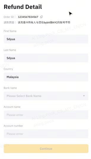储值人的详细资料必须与您的 Bybit KYC 详细资料完全一致。严禁使用第三方帐户进行付款转帐。请确保付款人资讯(例如全名和税号)与您的 Bybit KYC 中提供的详细资讯一致。否则可能会导致储值失败,需要进一步审核。请注意,假设已根据要求及时提供所有必需信息,审核可能需要 7-14 个工作天。