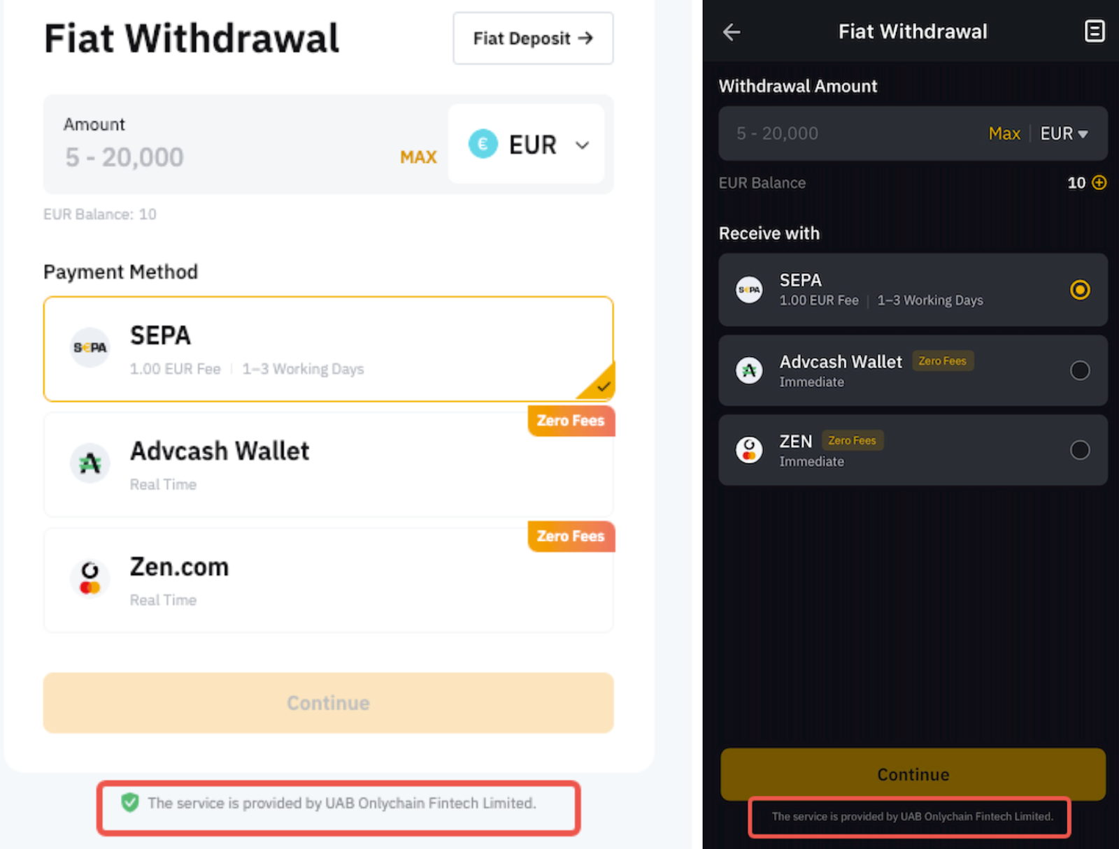 根据所选法币和支付方式的不同,处理时间可能会有所不同。您可以前往法币提币页面并选择法币,以找到每个法币的预计处理时间。欲了解详情,请仔细阅读订单窗口旁边的提示。